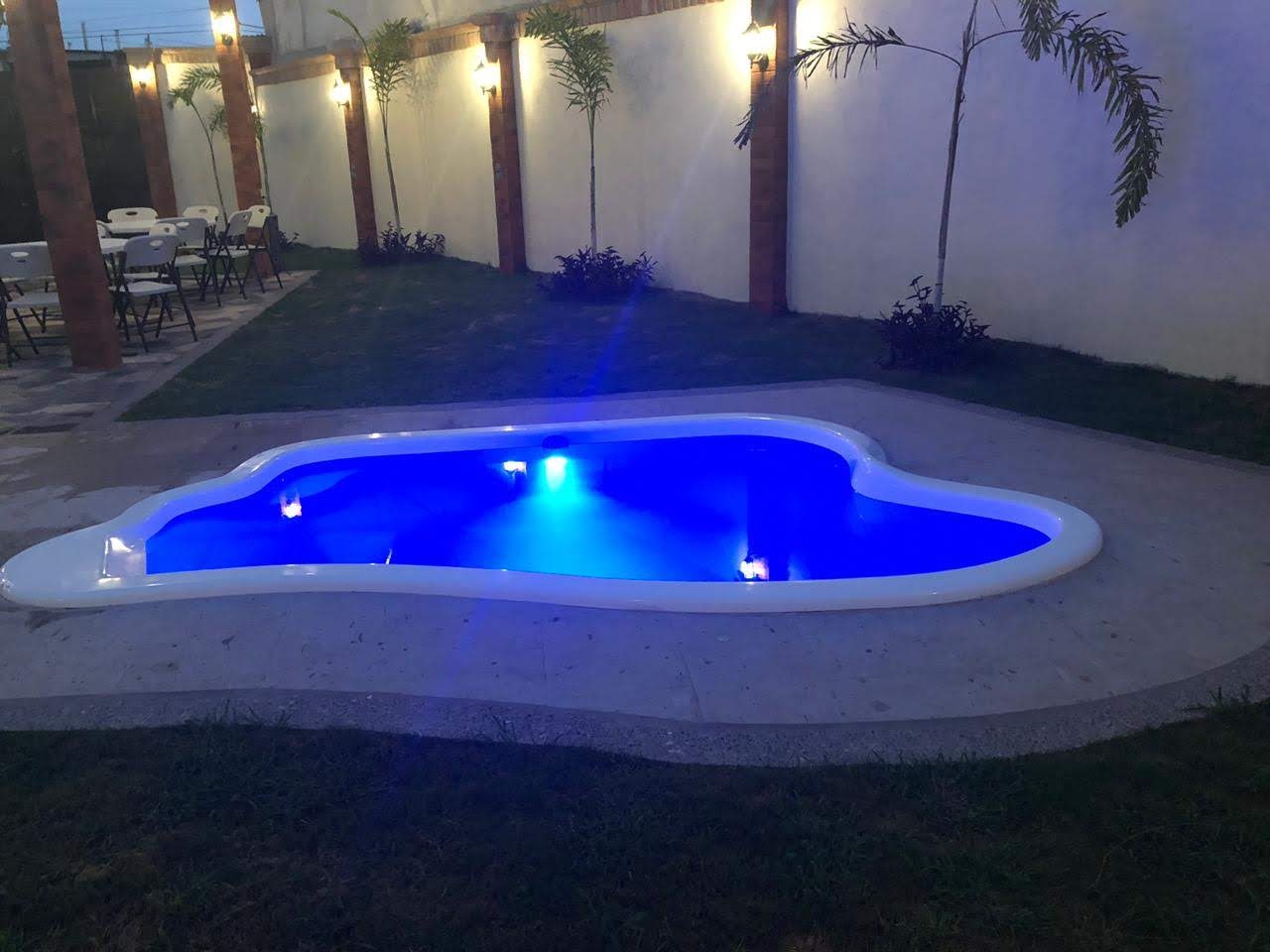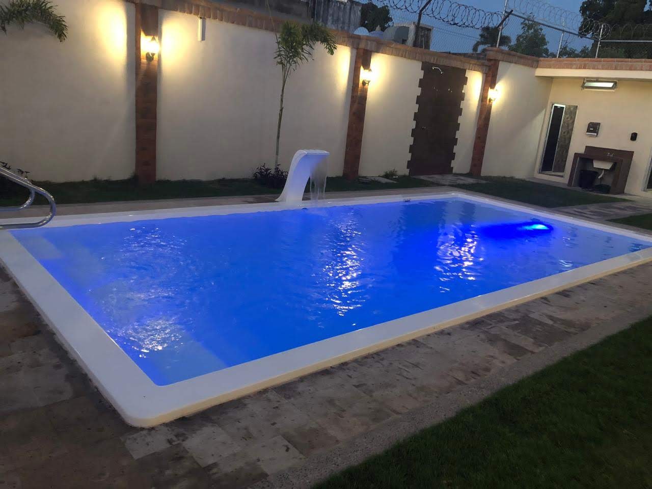 – 2 Baño, 1 Regadera, Cascada Funcionando, Luces al interior de la alberca